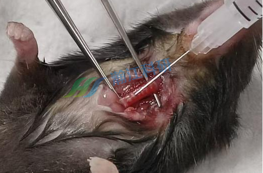 ④ 注射完毕后,迅速拔出针头,对颈部切口进行缝合处理。
